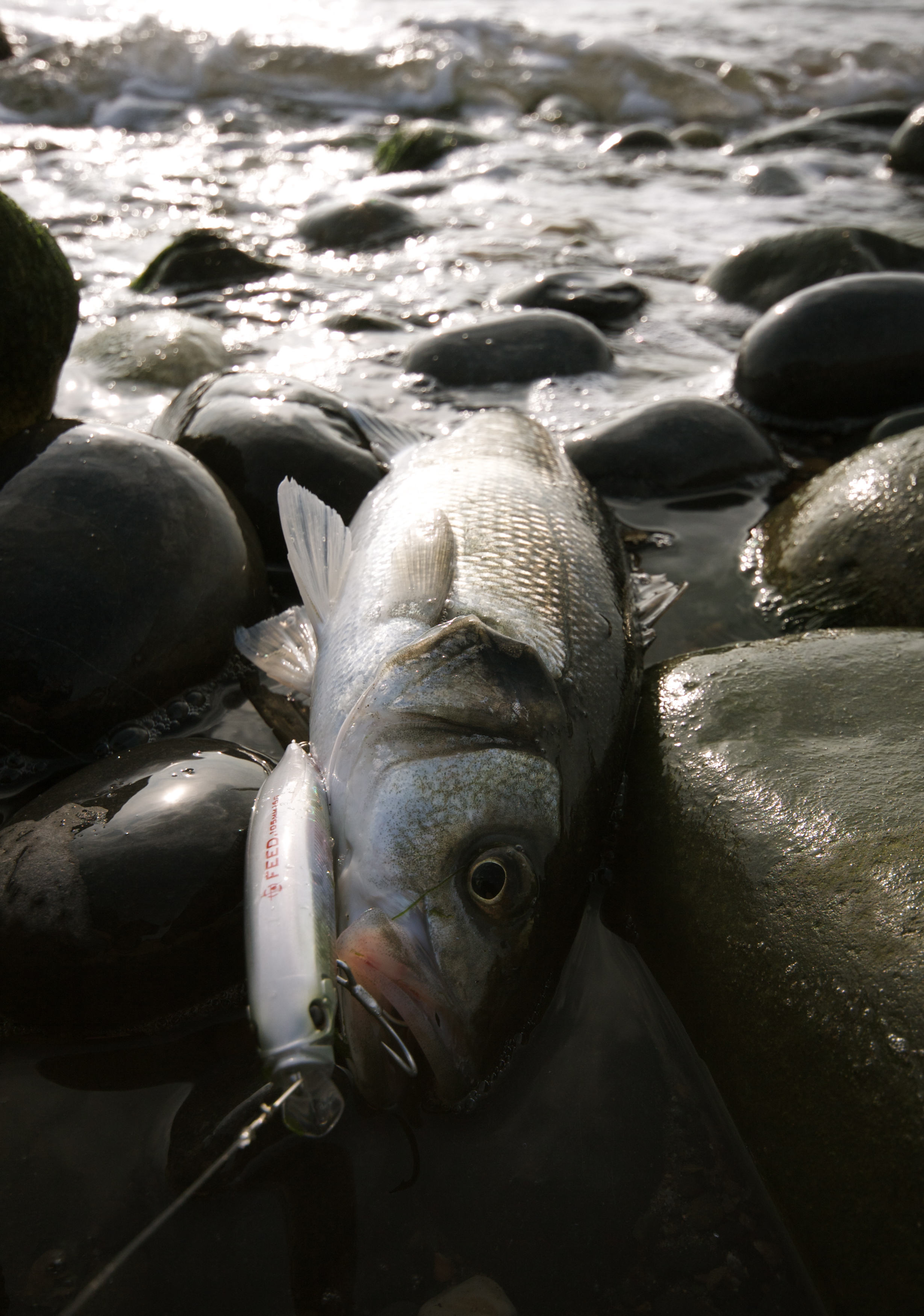 It was low water when i arrived, and as i hadn’t fished this venue with a lure before i decided to put on a trusty Feed Shallow for a bit of familiarity. I waded out to my waist and moved along a few steps each cast. After about 30mins there was a good take just after the lure hit the water, and soon enough the first fish was beached.