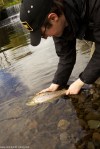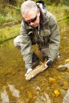 Sam had never fished here before, and was delighted with his first decent trout on his ultra-light gear.