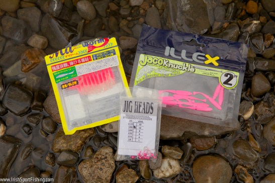 The line we were using was as light as 3lb fluorocarbon fished straight through, or 0.3PE braid. The most effective lure was a tiny jig-head from Wapsi (1/80 oz) with a 2″ soft plastic lure on the end. Something along the lines of the Illex Jacoknuckle or a Maria Worm-Actioned Fish. These tiny lures swung around beautifully with the flow, and they seemed to work best when fished as slow as possible.