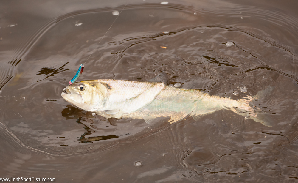 I would urge all anglers to take a couple of minutes to return each fish carefully. They are a delicate fish, and often need to be held upright while they get their breath back. Make an effort to climb down the bank into the river and don’t simply drop the fish back from a height. We spent up to five minutes reviving fish, but they all swam away strongly in the end. The River Barrow is the only river in Ireland worth fishing for Shad these days and it would be shame to see them disappear.