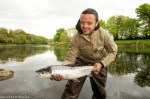 The water was still a bit murky the first day and it was windy as hell the second, but after flogging the beat up and down John finally got a take. I had actually just turned on the camera and said to John to give me three casts. I told him not to wait for the fly to come around and instead just retrieve straight away and cast again. On cast number two the fish took! A few minutes later I tailed a lovely fresh fish of 7.5lbs.