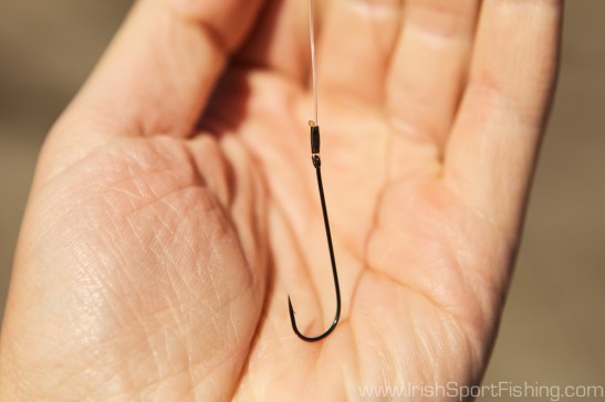 A neat trick that Ash sometimes uses is crimping the hook to the snood rather than knotting it. The tag end is heated carefully with a lighter meaning that it cannot pass back through the crimp, and the crimp is gently tightened. This eliminates any creases in the hooklength that may form when a knot is pulled tight, and creates a neat join from hook to snood. The strength of this method was proven as Ash hauled in Dogfish after Dogfish through the kelp.