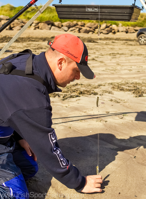 On this particular day the Ventry dogfish wanted sandeels, and Ash places great faith in Ammo eels. A few eels were taken out of the coolbox to thaw in-between casts, before being meticulously whipped onto the hooks. Ash only cuts the heads off the eels just before casting, ensuring the baits retain the maximum blood and juices. He then tees the cast up, and effortlessly launches the baits towards the horizon. Each cast easily lands a good twenty yards past his opponents either side of him, giving him the advantage of being the sole angler fishing at that range. This advantage became apparent as he bagged up on dogfish to easily win his section. Ash says, “I accept that there are many times when long-range casting is not important but it is an awesome weapon to have in your arsenal. Knowing when to use it is the secret – too many people are blinkered and cast to their limit all the time”.